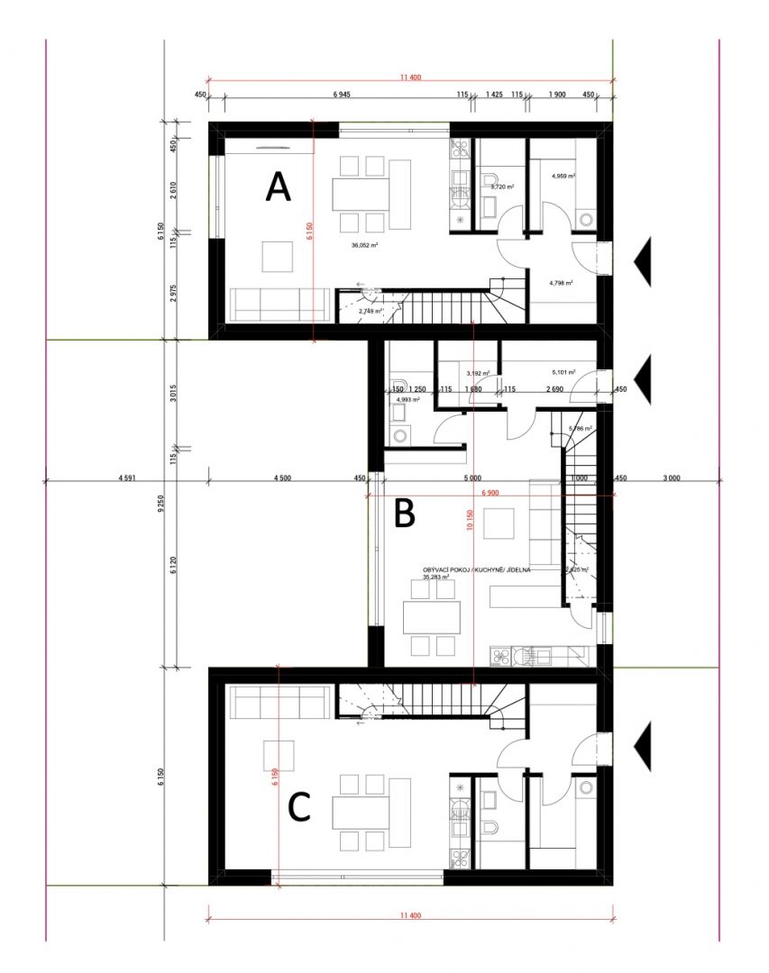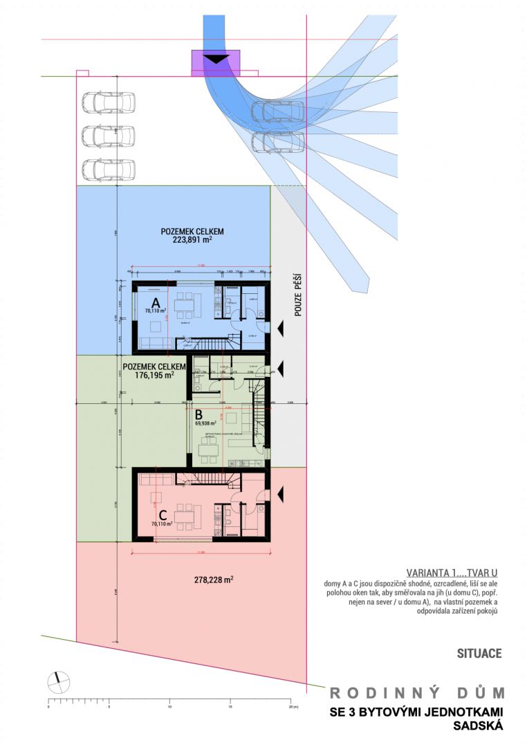 V městě Sadská připravujeme projekt rodinného domu s třemi bytovými jednotkami