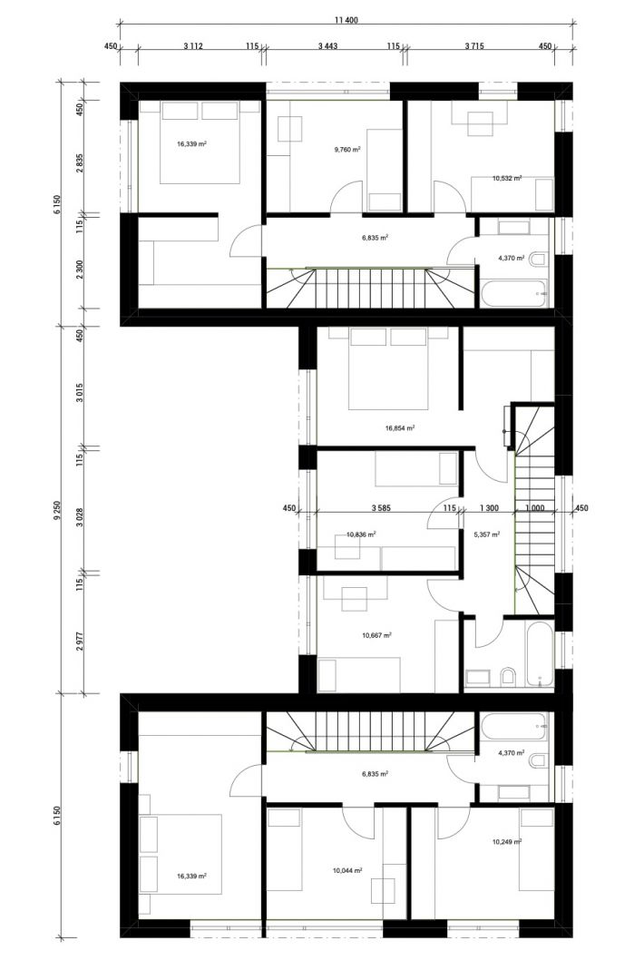 Dispoziční řešení bytů je 4+KK, Umístění na pozemku je řešeno tak, aby každá bytová jednotka měla zahrádku s maximláním soukromím a valstním přístupem. Orientace zahrad je jižní.